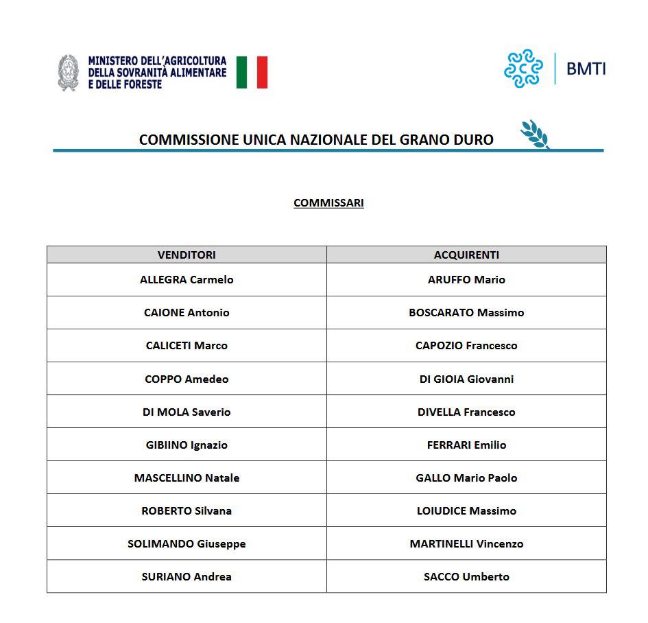 La Commissione unica nazionale del grano duro si riunisce e quota. Esce il primo listino, a suo modo storico, ed è questo (segue dopo la tabella):