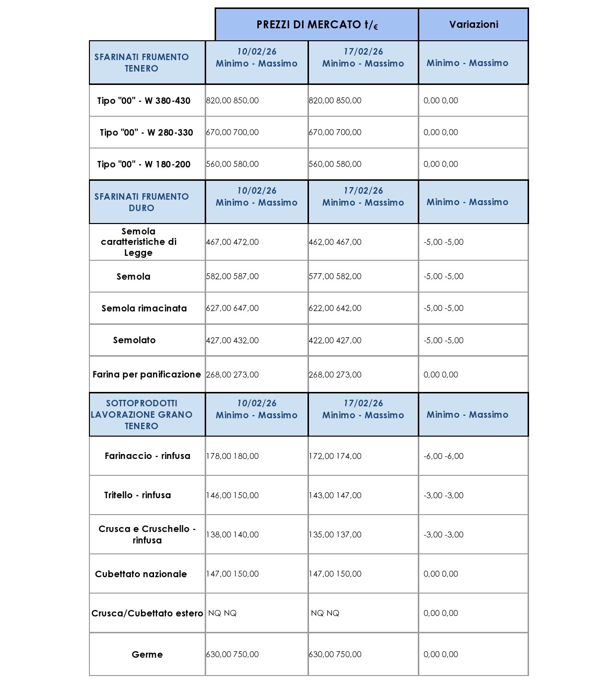 Settimana all’insegna dei ribassi per il frumento tenero nazionale, come avvenuto nella precedente rilevazione (LEGGI). Cali più marcati a Bologna, dove le quotazioni arretrano di 2-4 €/t, e più contenuti a Milano, con flessioni nell’ordine di 1-2 €/t. Sul fronte delle origini estere, il capoluogo lombardo si mantiene pressoché invariato, mentre Bologna registra perdite fino a 7 €/t sul prodotto comunitario e lievi rialzi su quello nordamericano. Sostanzialmente stabile, invece, il mercato del grano duro: Milano segna qualche lieve calo ma conserva valori superiori rispetto a Bologna, con Foggia che si conferma anche questa settimana la piazza più quotata.